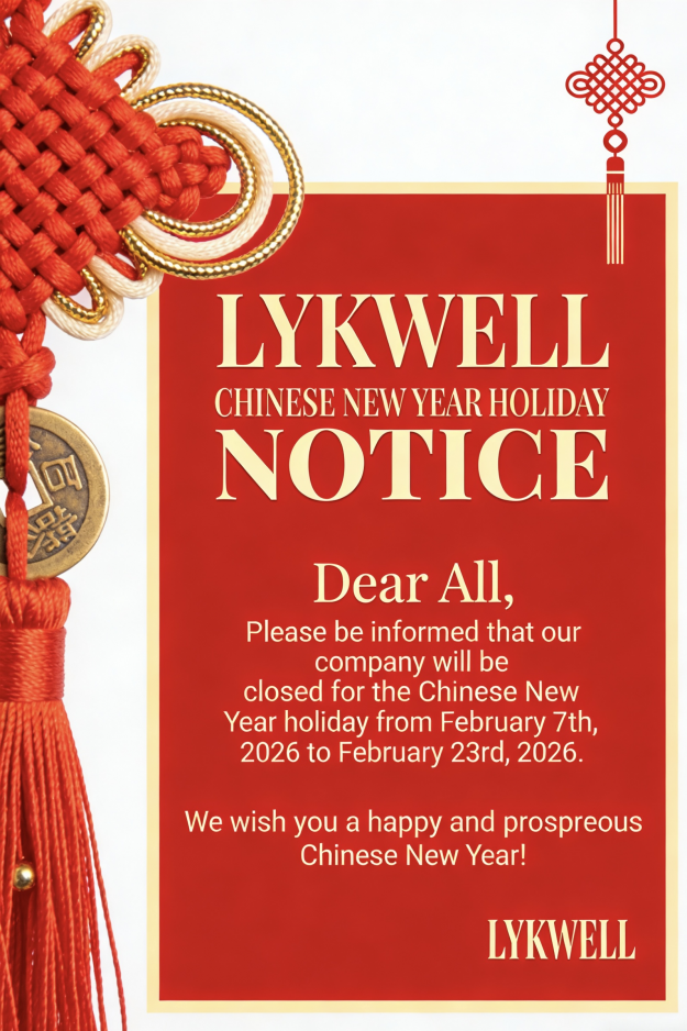 As the Chinese New Year approaches, LYKWELL would like to inform our clients and partners of our upcoming holiday schedule. In celebration of the Spring Festival, our office will be closed from February 7, 2026 (the 20th day of the 12th lunar month) to February 23, 2026 (the 7th day of the 1st lunar month).…